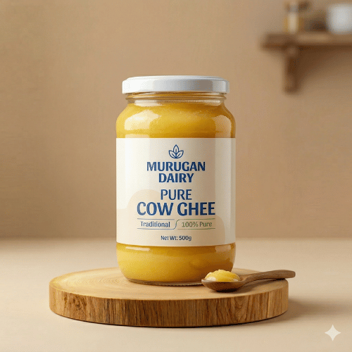 Traditional ghee prepared from pure cow milk, rich in aroma and crafted using time-honored methods.